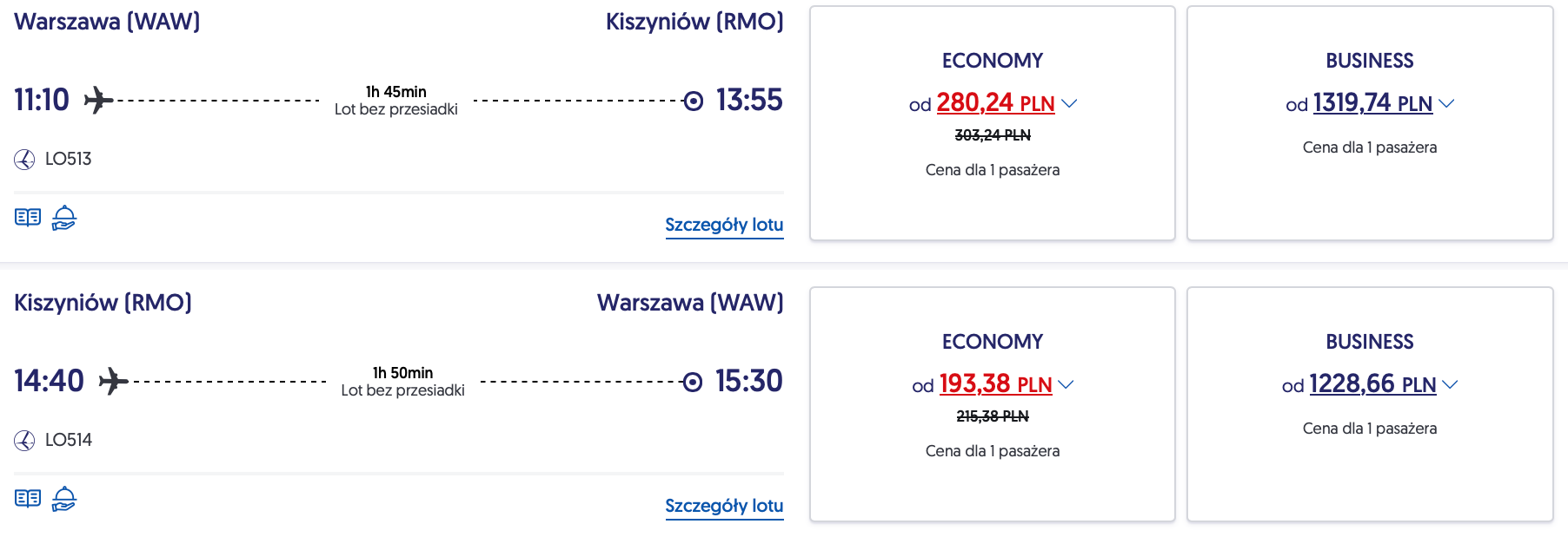 PLL LOT realizują loty z Warszawy, Bydgoszczy, Gdańska, Katowic, Krakowa, Lublina, Poznania, Rzeszowa, Szczecina, Wrocławia i Zielonej Góry. Promocja obowiązuje na loty w dwie strony w klasie ekonomicznej.