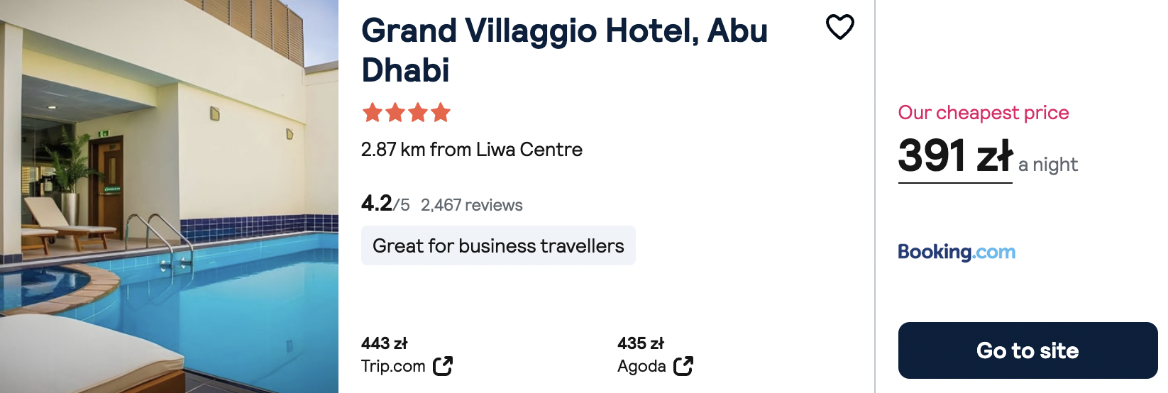 W Zjednoczonych Emiratach Arabskich proponuję 4* hotel Grand Villaggio. Obiekt będzie dobrą bazą wypadową do zwiedzania miasta. Na jego terenie skorzystasz z basenu.