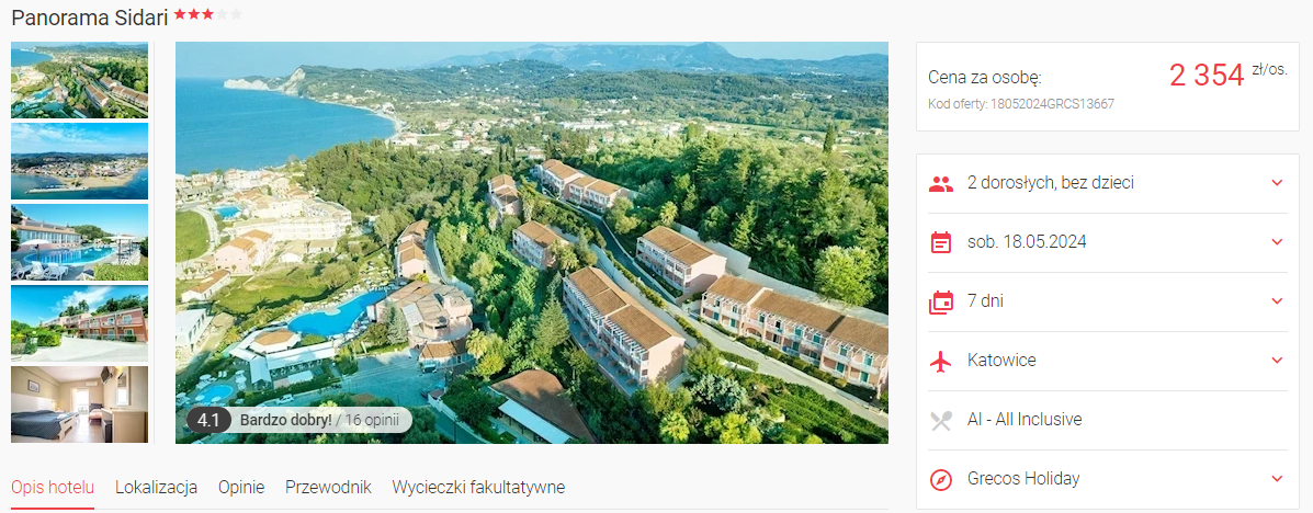 Spędzisz tydzień w 3* hotelu Panorama Sidari. Obiekt zlokalizowany jest w pobliżu słynnego Canal d’Amour, a do dyspozycji gości czeka m.in. basen i dyskoteka.