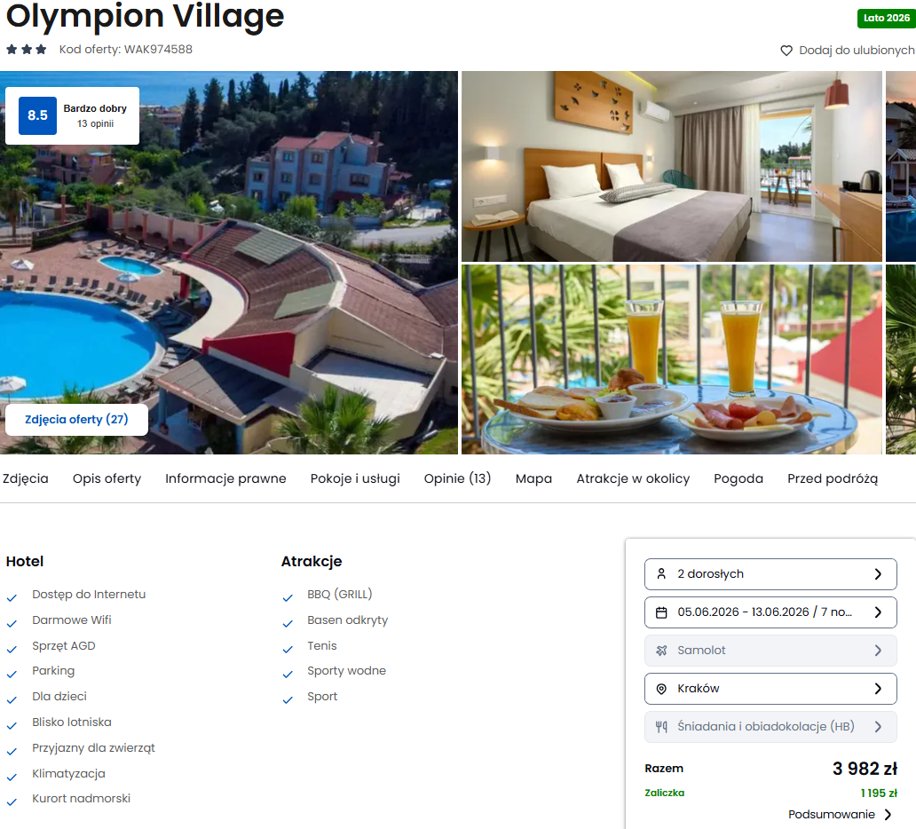 🛏️ Zakwaterowanie: 3* hotel Olympion Village