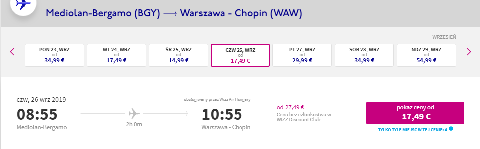 W najniższej cenie dostępne są 2 bilety, za kolejne zapłacicie 25 PLN więcej.