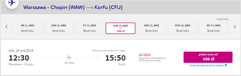 W najniższej cenie dostępne są 3 bilety, za kolejne zapłacicie 20 PLN więcej.