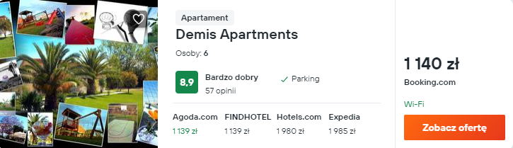 Wybrałem dla was noclegi w bardzo dobrze ocenianym, rodzinnym pensjonacie Demis Apartments. Znajduje się on w odległości krótkiego spaceru od plaży, w miejscowości Sidari i będzie świetną bazą dla waszego urlopu.