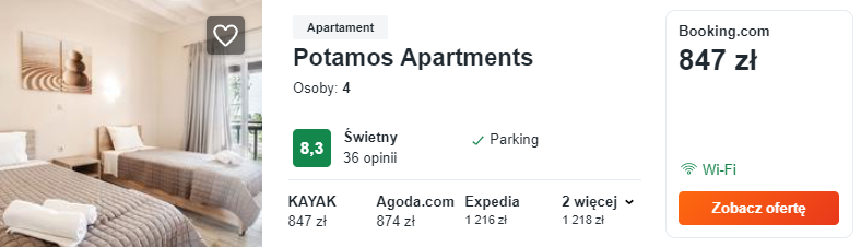 Zatrzymajcie się w bardzo dobrze ocenianym pensjonacie Potamos Apartments. Do waszej dyspozycji będą elegancko urządzone, komfortowe studia, wyposażone we wszystkie niezbędne udogodnienia.