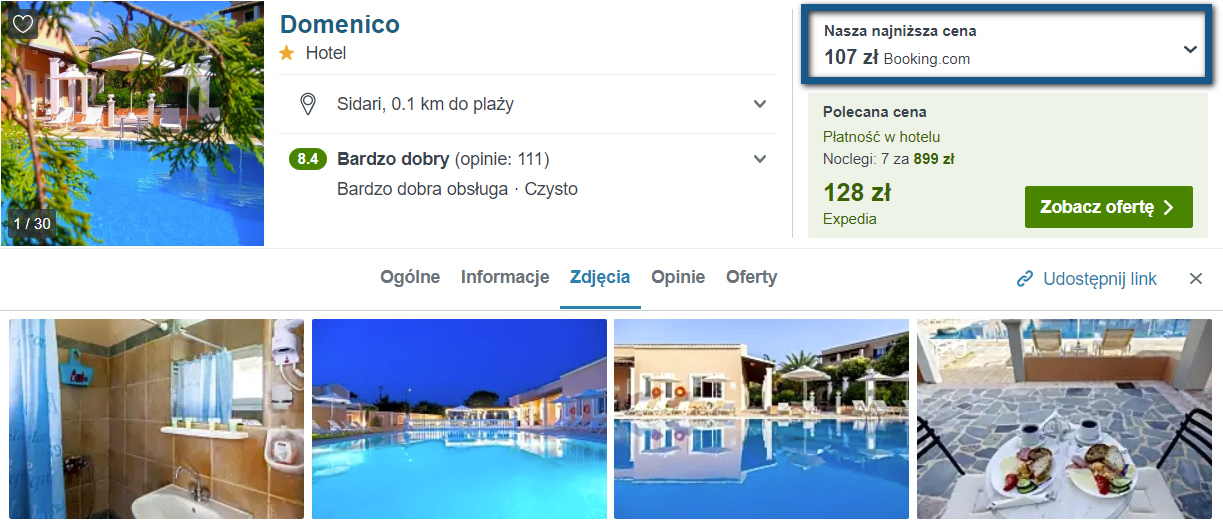 Jako miejsce zakwaterowania wybierzcie dla siebie hotel Domenico. Jego atutem jest położenie w miejscowości Sidari, w odległości krótkiego spaceru od plaży oraz pobliskich tawern.