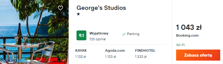 Wybrałem dla was świetnie oceniane noclegi w George’s Studios. Zobaczcie sami, jak wspaniale prezentuje się na zdjęciach widok z pensjonatu!