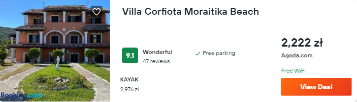 Wybrałem dla was zakwaterowanie w bardzo dobrze ocenianym pensjonacie Villa Corfiota Moraitika Beach. Znajduje się on w odległości krótkiego spaceru od plaży. Będzie to świetne miejsc na spędzenie wakacyjnego urlopu.