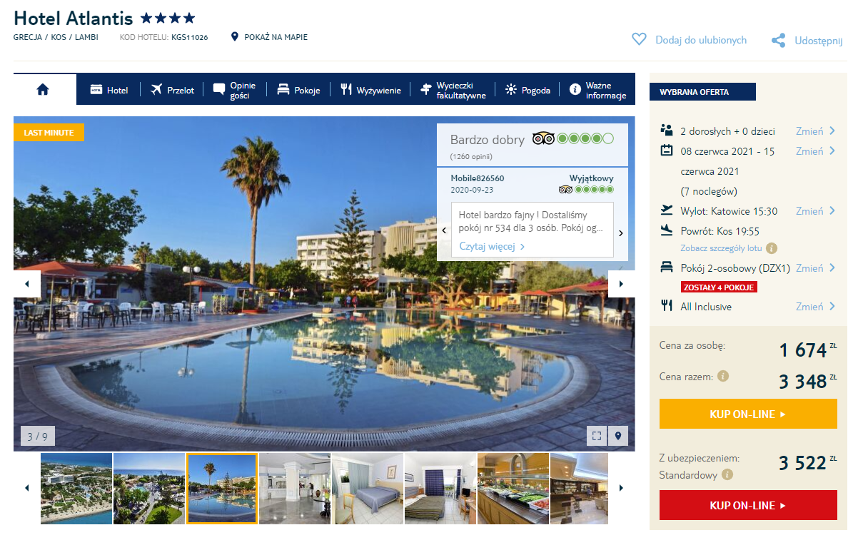 Macie ochotę na słoneczny, spontaniczny wyjazd? Pakujcie walizki i już w przyszłym tygodniu ruszajcie do Grecji – na słoneczną wyspę Kos. Poza zakwaterowaniem w komfortowym, 4* hotelu z all inclusive czekają tam na was świetne warunki do wypoczynku – wyspa może poszczycić się ponad 100-kilometrową linią brzegową!