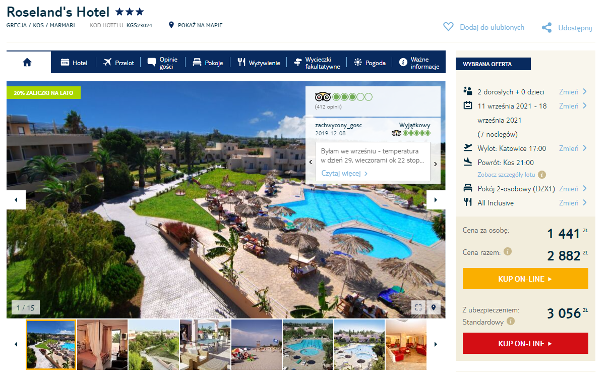 Niedrogi wypoczynek w słonecznej Grecji: skorzystajcie z okazji oferowanej przez biuro podróży i ruszajcie na beztroskie wakacje na Kos. Na miejscu czeka was niemal gwarantowana słoneczna pogoda, świetne warunki do plażowania oraz bogata oferta wyżywienia w ramach wliczonego w cenę all inclusive.