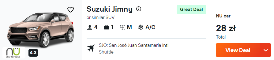 W Kostaryce przydatny będzie własny środek transportu. Najlepiej sprawdzi się wynajęty samochód typu SUV, który polecam wypożyczyć już na lotnisku.