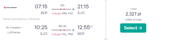 Do Ameryki Środkowej udacie się w terminie 10 – 17(18) listopada. Czekają was loty z Berlina do San Jose, realizowane na pokładzie samolotów linii lotniczych Air Canada oraz Lufthansa. Po drodze zaplanowano bezpieczne, gwarantowane przez przewoźników przesiadki we Frankfurcie, Toronto oraz Montrealu.