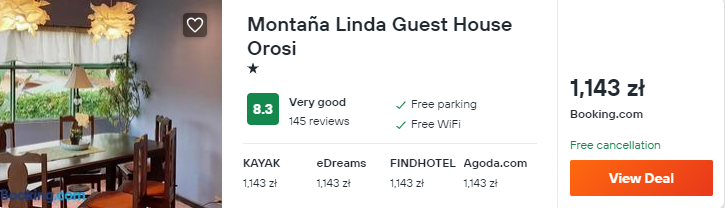 Wybrałem dla was zakwaterowanie w bardzo dobrze ocenianym pensjonacie Montaña Linda Guest House Orosi. Znajduje się on w spokojnej okolicy otoczonej lasem, a z okien obiektu będziecie rozciąga się wspaniała panorama.