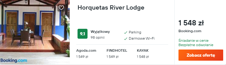 Zatrzymajcie się w bardzo dobrze ocenianym obiekcie wypoczynkowym Horquetas River Lodge. To wyjątkowe miejsce położone blisko natury. Będzie stanowiło ono świetną bazę wypadową dla waszych wycieczek, a na idealny początek dnia otrzymacie śniadanie wliczone w cenę zakwaterowania.