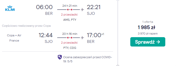 Do Kostaryki polecicie w gorącym, wakacyjnym terminie 7 – 14 lipca. Czekają was loty z berlińskiego lotniska na pokładzie samolotów linii lotniczych Air France, Copa Airlines oraz KLM z bezpiecznymi, gwarantowanymi przez przewoźników przesiadkami w Paryżu, Panamie i Amsterdamie.