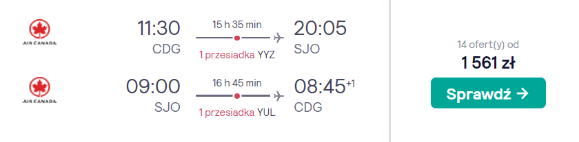 Aby dostać się do San Jose w bardzo atrakcyjnej cenie (1856 PLN), będziecie musieli dokonać dwóch rezerwacji przelotów. Pierwszym etapem będzie bezpośrednia podróż z krakowskiego lotniska w Balicach lub ze stołecznego portu lotniczego im. Chopina do Paryża i z powrotem.