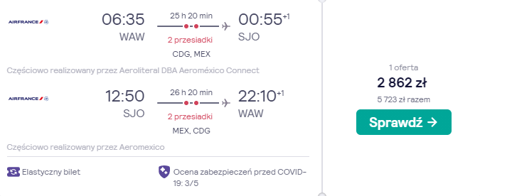 Na wycieczkę do Ameryki Środkowej wybierzecie się jesienią, w terminie 11 – 21 listopada. Czekają was loty z warszawskiego lotniska im. Fryderyka Chopina, realizowane na pokładzie samolotów linii lotniczych Air France oraz Aeromexico z bezpiecznymi, gwarantowanymi przesiadkami w Paryżu oraz mieście Meksyk.