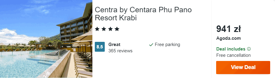 W Krabi rekomenduję wam pobyt w 4* hotelu Centra by Centara Phu Pano Resort.