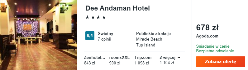 W Krabi wybrałam dla was zakwaterowanie w 4* hotelu Dee Andaman Resort. Na miejscu czekają klimatyzowane pokoje, odkryty basen oraz śniadania wliczone w cenę noclegów – zapowiada się udany pobyt!