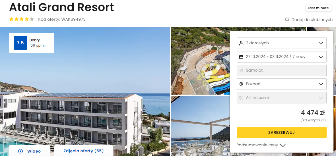 Kreta last minute za 2237 PLN. Loty z 2 miast + fantastyczny 4* hotel z all inclusive