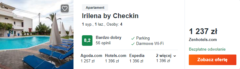 Wybrałem dla was bardzo dobrze oceniane noclegi w pensjonacie Irilena by Checkin. Na miejscu do waszej dyspozycji będzie apartament typu studio z balkonem z widokiem na morze oraz odkryty basen.