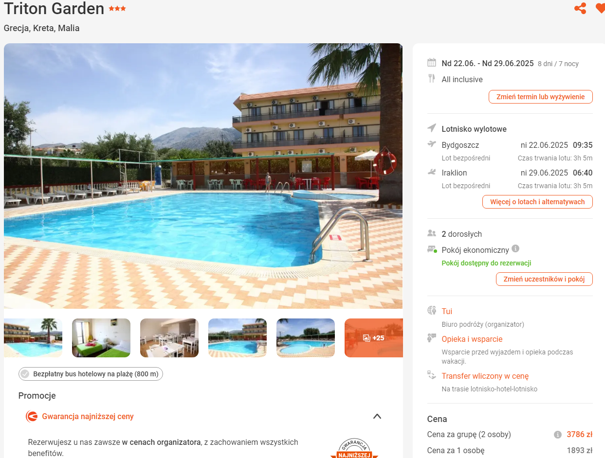 Na urlop do Grecji udasz się w terminie 22 – 29 czerwca 2025 r. Do Heraklionu polecisz bezpośrednio z Bydgoszczy z Ryanair Sun.