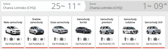 - Wypożyczenie samochodu za 277 PLN/2 osoby/7 dni (138,5 PLN/osoba)