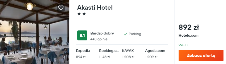 W okolicach Chanii wybrałem dla was noclegi w bardzo dobrze ocenianym hotelu Akasti. Do waszej dyspozycji będą tam klimatyzowane pokoje z balkonem, odkryty basen oraz zielony ogród.