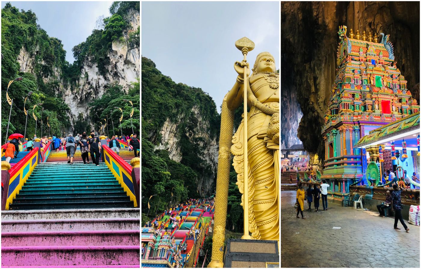 Malowniczo położony zespół wapiennych jaskiń odkryty został dopiero pod koniec XIX wieku. Położony w granicach miasta dziś jest jedną z jego najbardziej znanych atrakcji – wejście do pieczar zdobią charakterystyczne kolorowe schody oraz ponad 40-metrowa złota figura hinduskiego bóstwa Muruga.
