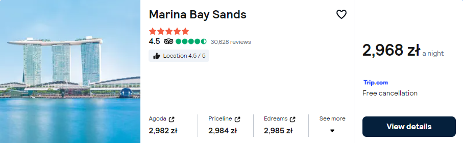 Świetny 5* Marina Bay Sands to jeden z najbardziej luksusowych hoteli świata, którego bryła na stałe wpisała się w panoramę Singapuru. Większość z nas nie będzie mogła pozwolić sobie na noclegi w tym miejscu, warto jednak chociaż zobaczyć, jak wspaniale prezentuje się on na zdjęciach!
