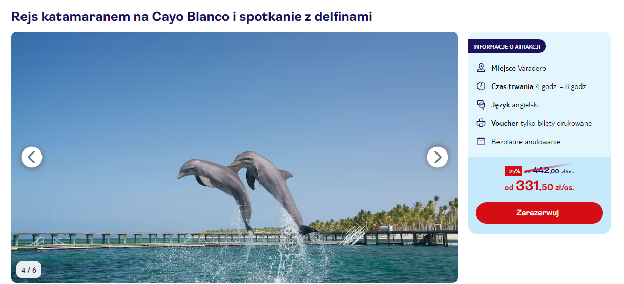 Chciałbyś zobaczyć coś niezwykłego w czasie urlopu? Zarezerwuj rejs katamaranem na Cayo Blanco, by spotkać delfiny!
