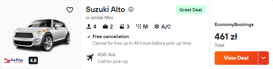 Zachęcam cię także do wypożyczenia samochodu po przylocie na Kos. Mając do swojej dyspozycji auto, łatwo i wygodnie dojedziesz w różne rejony wyspy.