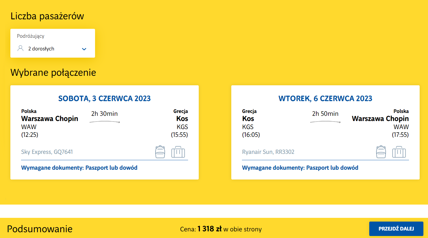 Na południe Europy podróżować będziesz z warszawskiego portu lotniczego im. Fryderyka Chopina w terminie 3-6 czerwca. W obie strony polecisz bezpośrednio. W cenie biletu zabrać ze sobą możesz bagaż rejestrowany (nadawany do luku) oraz bagaż podręczny.