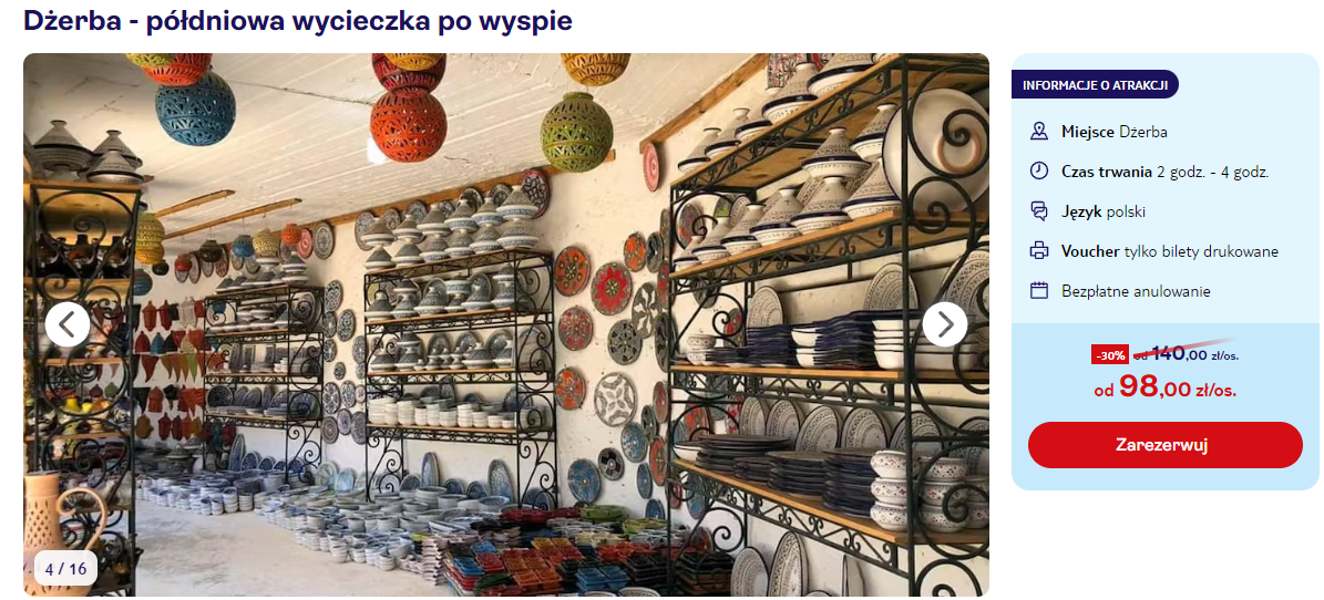 Lubisz również nieco pozwiedzać? Zarezerwuj dla siebie półdniową wycieczkę po Dżerbie, by dowiedzieć się więcej na temat tego niezwykłego miejsca.