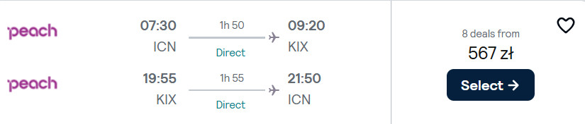 Podróż do Azji składa się z dwóch niezależnych przelotów na trasach: Warszawa-Seul-Warszawa oraz Seul-Osaka-Seul lub Seul-Tokio-Seul.