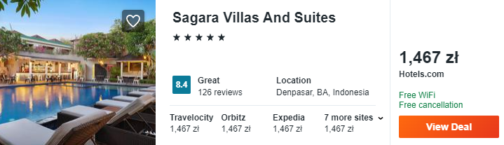 Za loty w dwie strony i noclegi w 5* hotelu na Bali zapłacicie 3700 PLN za osobę, przy 2 podróżnych śpiących w jednym pokoju.