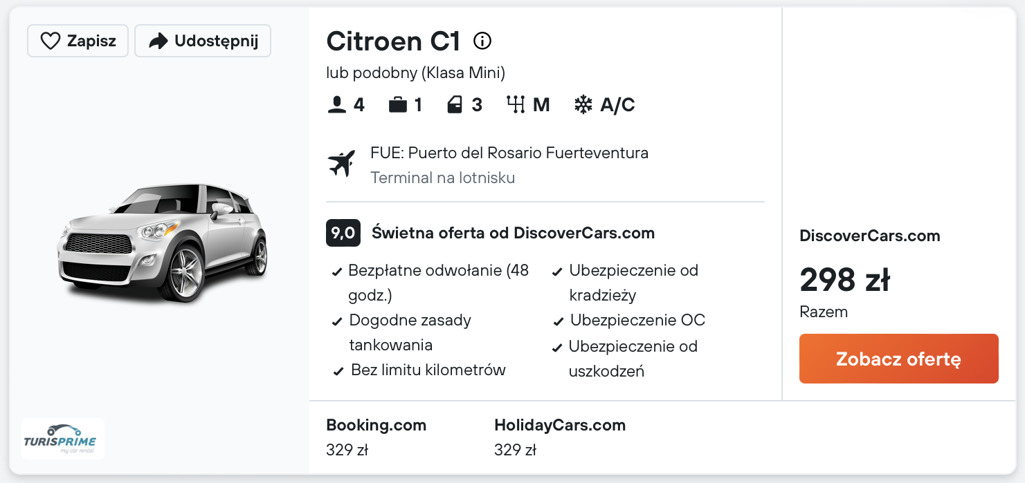 Aby zobaczyć wszystkie atrakcje na Fuerteventurze, wypożycz samochód już na lotnisku.