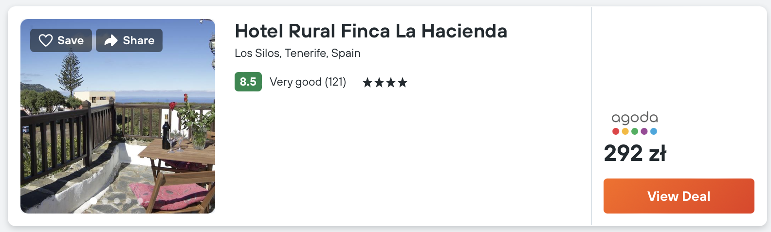 Na Teneryfie polecam noclegi w 4* hotelu Rural Finca La Hacienda, który oferuje malowniczy widok na okolicę.