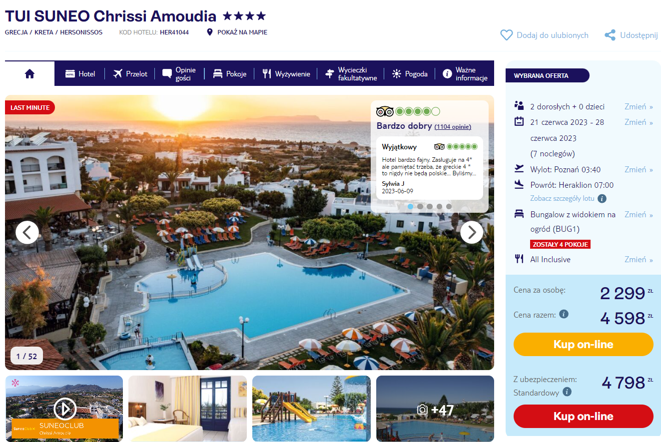 Oferta zawiera wyżywienie w formule all inclusive, podstawowe ubezpieczenie oraz bagaż rejestrowany. Transfery lotniskowe można dokupić za 60 PLN w obie strony.