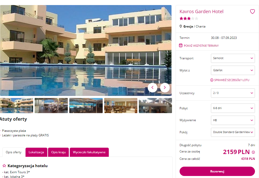 Do Grecji udasz się w terminie 30 sierpnia – 7 września. Do Chanii polecisz bezpośrednio z Gdańska. Będziesz mógł zabrać ze sobą bagaż podręczny.