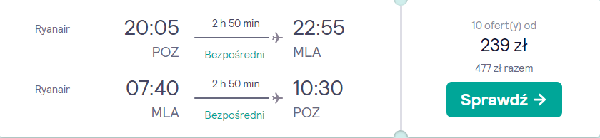 Na Maltę udacie w piątek (2 września) z portu lotniczego Poznań-Ławica, a do stolicy województwa wielkopolskiego wrócicie w poniedziałek (5 września). W obie strony podróżować będziecie bezpośrednio na pokładach samolotów linii Ryanair z wliczonym małym bagażem podręcznym.