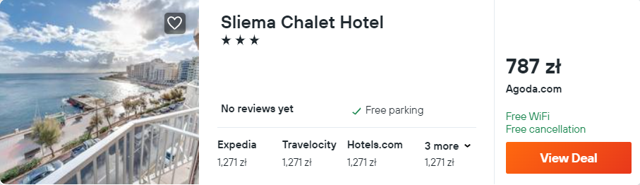 Na wyspie zakwaterowani będziecie w bardzo dobrym w 3* hotelu Sliema Chalet, który znajduje się w nadmorskiej miejscowosći – o tej samej nazwie. Z lotniska w okolice miejsca noclegowego dojedziecie autobusem za 2 EUR lub wypożyczonym samochodem – szczegóły poniżej.