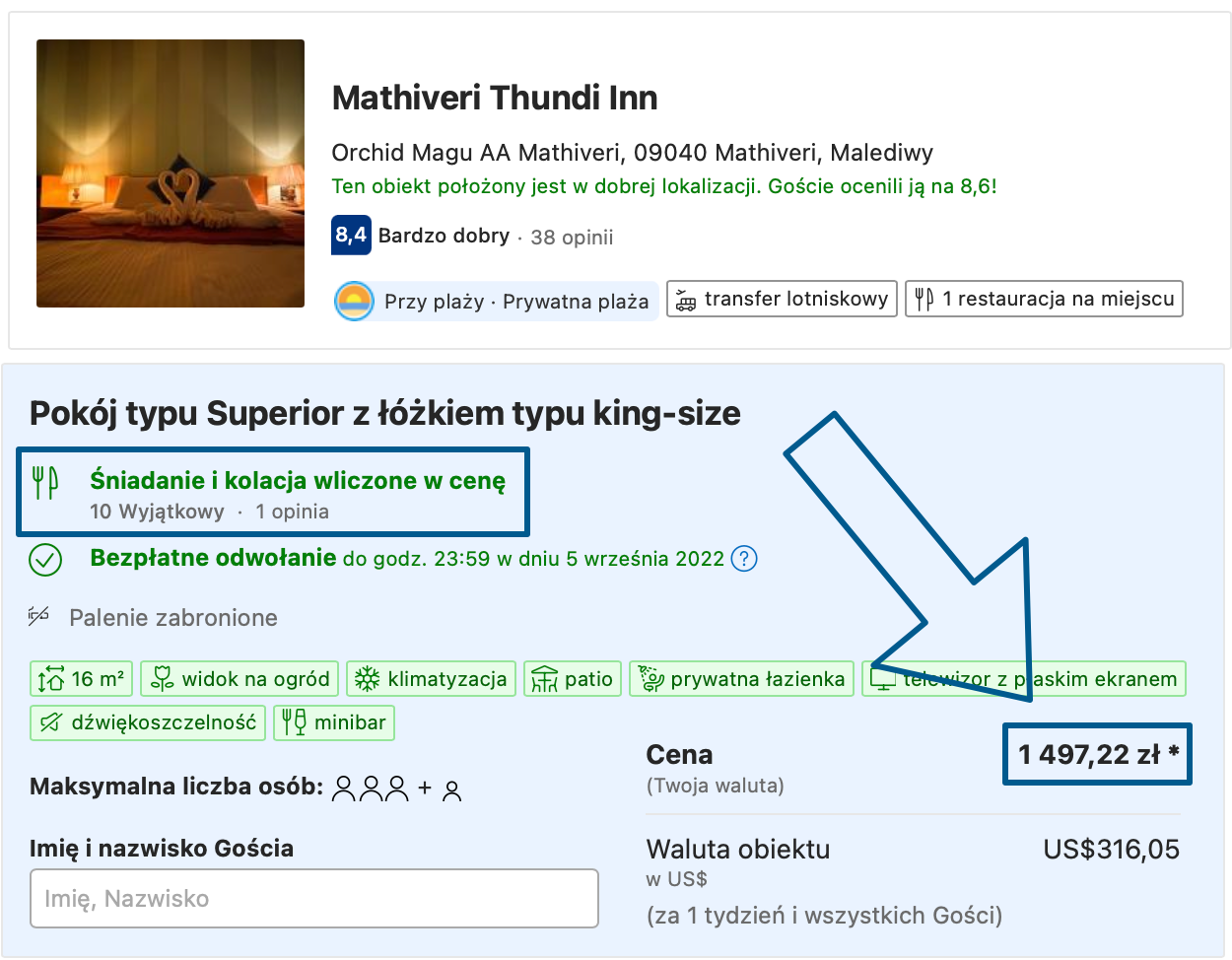 Za loty w dwie strony i zakwaterowanie zapłacicie 3598 PLN za osobę, przy 2 podróżnych śpiących w jednym pokoju.