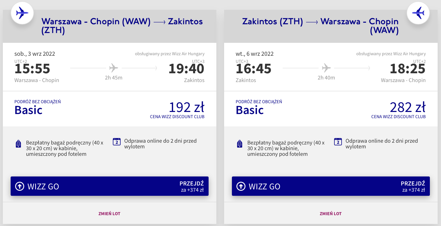 Na urlop wybierzecie się w terminie 3-6 września (sobota-wtorek). Do Grecji polecicie bezpośrednio z lotniska w Warszawie na pokładzie samolotu linii lotniczej Wizz Air. Pamiętajcie, że bilety w najniższej cenie dostępne są dla członków Wizz Discount Club, chętni na loty bez WDC zapłacą nieco więcej.