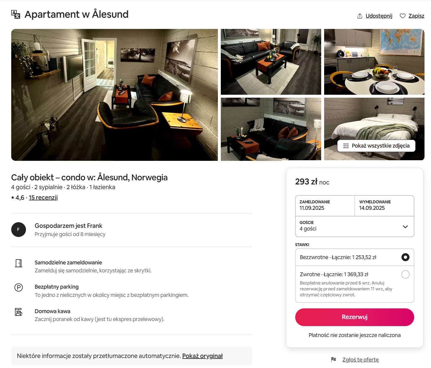 Do Alesund wylecisz w czwartek (11 września) z Gdańska o 12:10. W drogę powrotną wyruszysz w niedzielę (14 września), a odlot zaplanowany jest na godzinę 14:45. W obie strony podróżować będziesz linią Wizz Air. Bilety w najniższej cenie dostępne są dla wszystkich chętnych. Do ich zakupu nie potrzebujesz żadnych klubów zniżkowych!