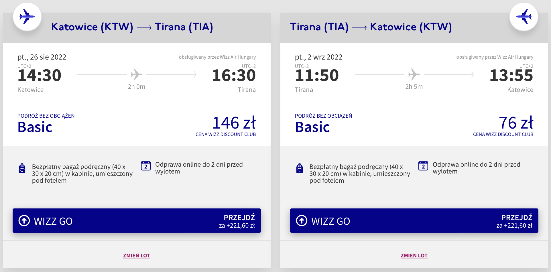 Do Tirany udacie się w terminie 26 sierpnia – 2 września. Podróż rozpoczniecie i zakończycie w katowickim porcie lotniczym w Pyrzowicach. W obie strony polecicie bezpośrednio na pokładach samolotów linii Wizz Air z wliczonym małym bagażem podręcznym.