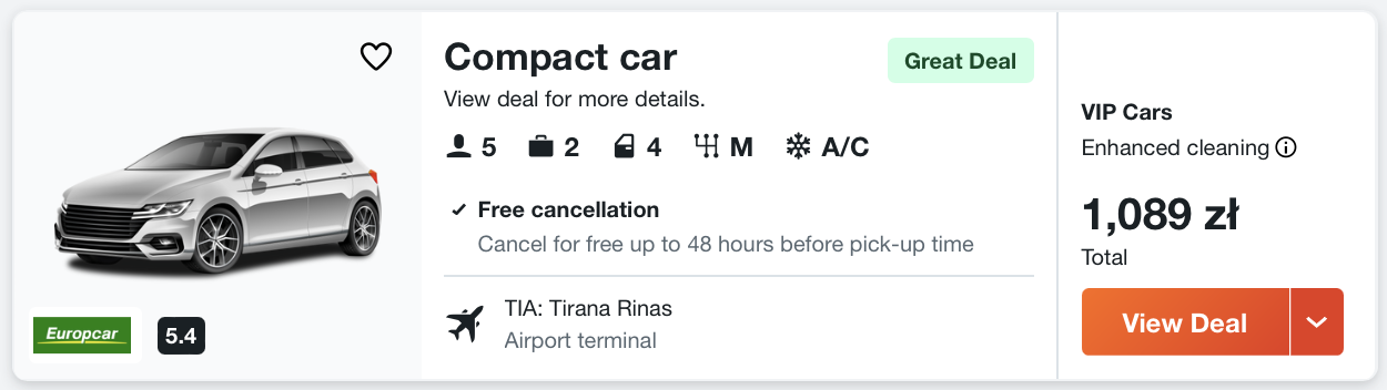 Aby szybko dojechać do Durres i zobaczyć wszystkie atrakcje w okolicy, wypożyczcie samochód już na lotnisku w Tiranie.