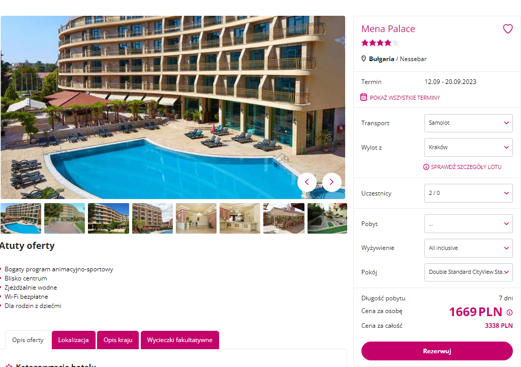 Do Bułgarii udasz się w terminie 12-20 września. Czeka cię bezpośredni lot do Burgas z Krakowa. Bez dodatkowych opłat polecisz z bagażem podręcznym. W cenę wliczono podstawowe ubezpieczenie.