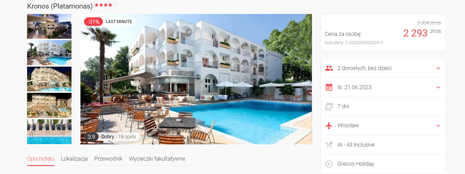 W podróż do Grecji udasz się w terminie 21-28 czerwca. Czeka cię bezpośredni lot do Salonik, a jako miejsce wylotu masz do wyboru Warszawę, Katowice lub Wrocław. W cenę pakietu wliczono bagaż rejestrowany, transfery oraz opiekę rezydenta.