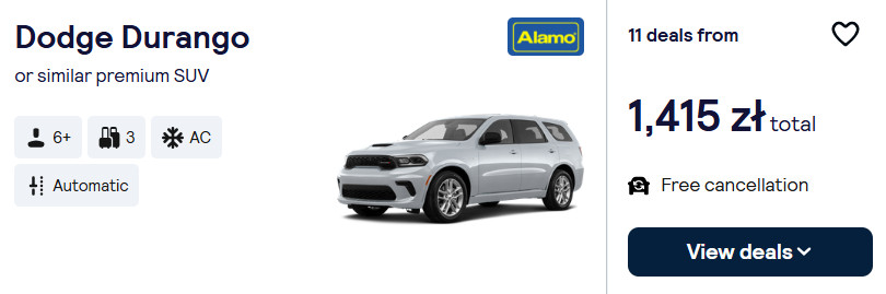 Po przylocie do Miami wypożycz samochód. W dobrej cenie możesz wynająć na przykład Dodga Durango lub coś podobnego.