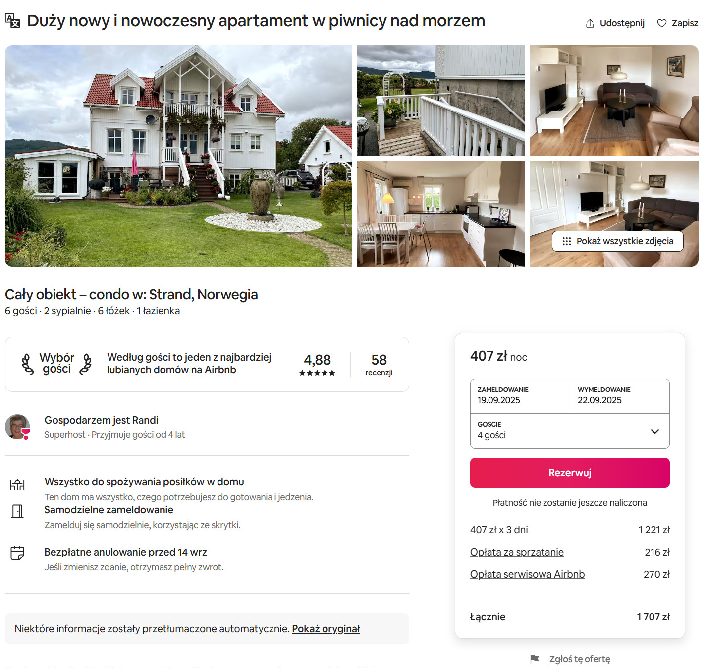 Dla całej grupy wybrałem zakwaterowanie w miejscowości Jørpeland. Do waszej dyspozycji będzie duża kuchnia, salon, dwie sypialnie oraz łazienki. W cenie zapewniony jest bezpłatny parking, dostęp do sieci WiFi czy pralka! W Jørpeland znajdują się takie sklepy, jak: REMA 1000, Extra Rådhusgaten czy KIWI.